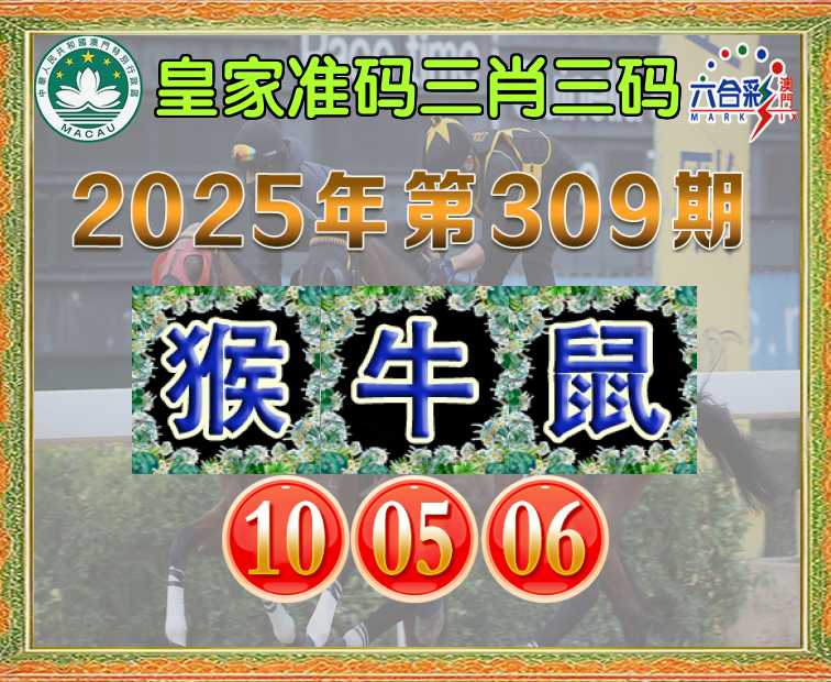 309期:【皇家准码】 👩‍🌾三肖三码👩‍🌾【猴牛】【10.05.06】开:鼠06