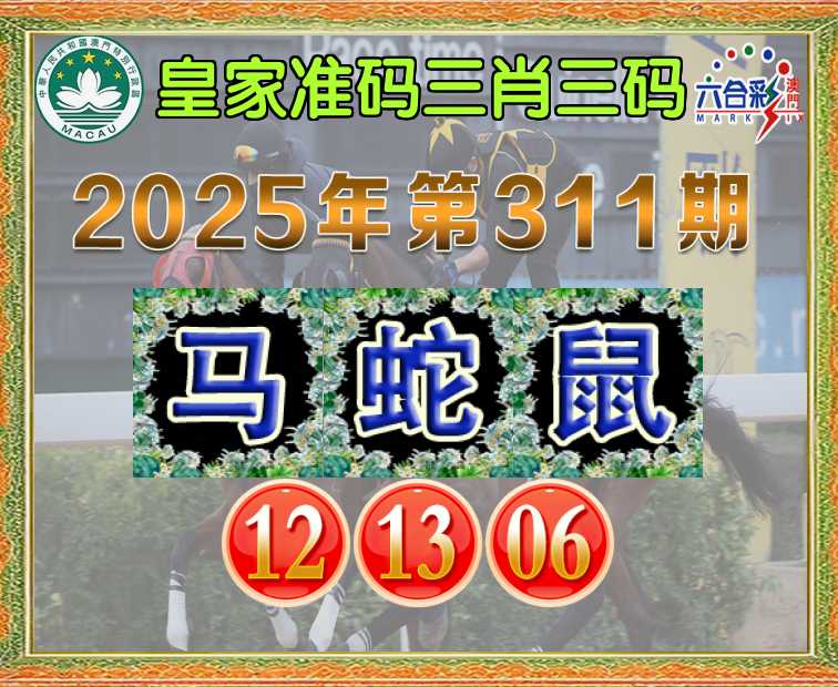 311期:【皇家准码】 👩‍🌾三肖三码👩‍🌾【马鼠】【12.13.06】开:蛇37