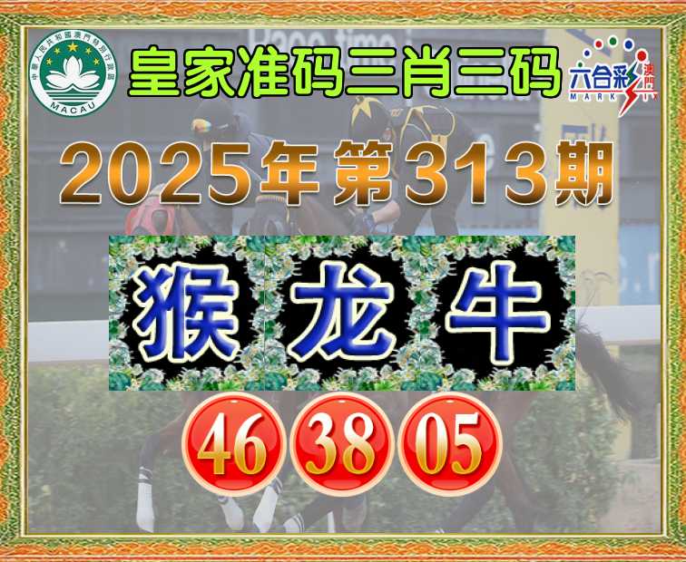 313期:【皇家准码】 👩‍🌾三肖三码👩‍🌾【猴牛】【46.38.05】开:龙38