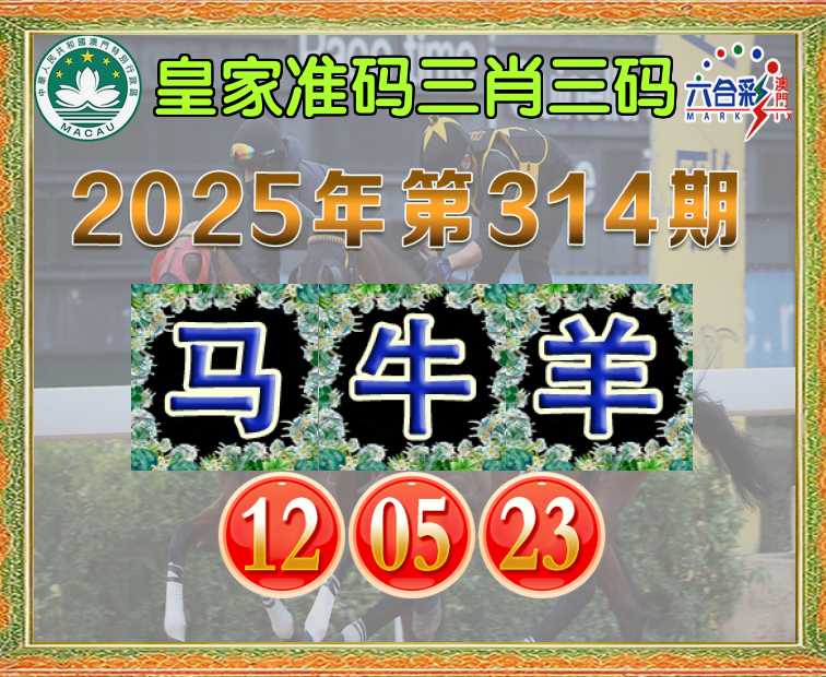 314期:【皇家准码】 👩‍🌾三肖三码👩‍🌾【马牛】【12.05.23】开:羊23