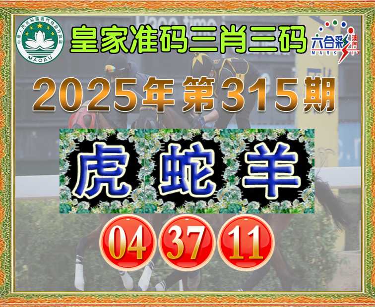 315期:【皇家准码】 👩‍🌾三肖三码👩‍🌾【蛇羊】【04.37.11】开:虎04