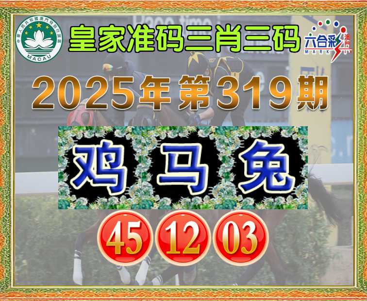 319期:【皇家准码】 👩‍🌾三肖三码👩‍🌾【马兔】【45.12.03】开:鸡45