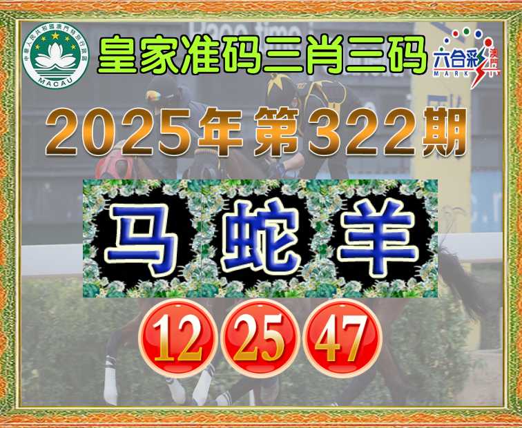 322期:【皇家准码】 👩‍🌾三肖三码👩‍🌾【马蛇】【12.25.47】开:羊47