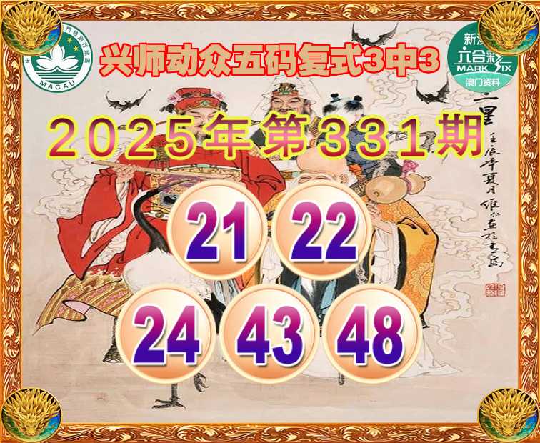 331期:『兴师动众』 ☝️五码复式3中3☝️