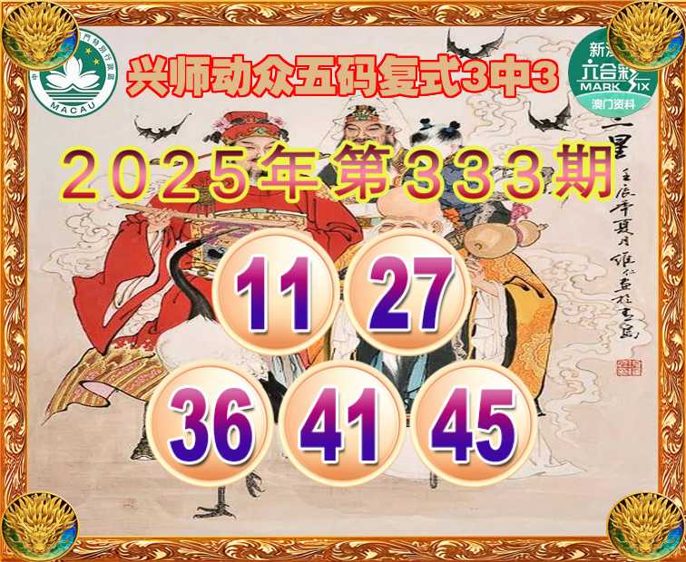 333期:『兴师动众』 ☝️五码复式3中3☝️