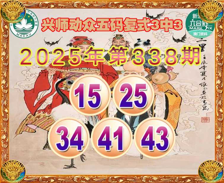335期:『兴师动众』 ☝️五码复式3中3☝️