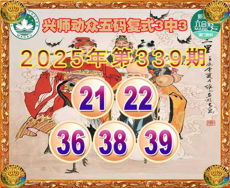 339期:『兴师动众』 ☝️五码复式3中3☝️