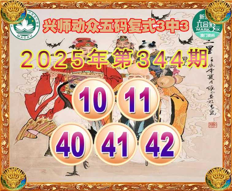 344期:『兴师动众』 ☝️五码复式3中3☝️