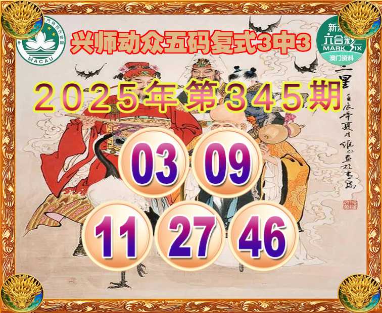 343期:『兴师动众』 ☝️五码复式3中3☝️