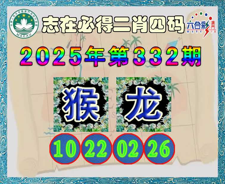 332期:《志在必得》 🍃二肖四码🍃【猴】【10.22.02.26】开:龙26