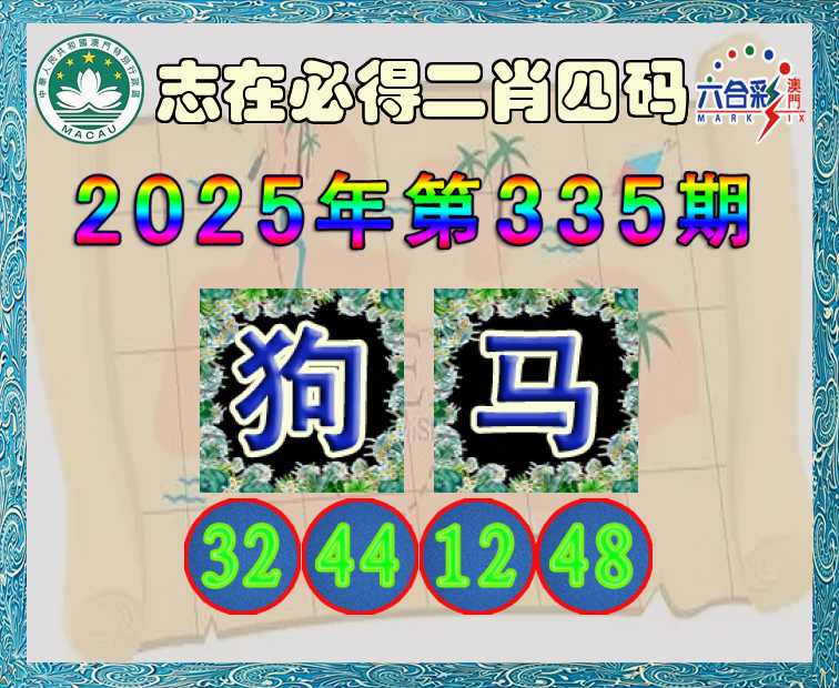 335期:《志在必得》 🍃二肖四码🍃【马】【32.44.12.48】开:狗44