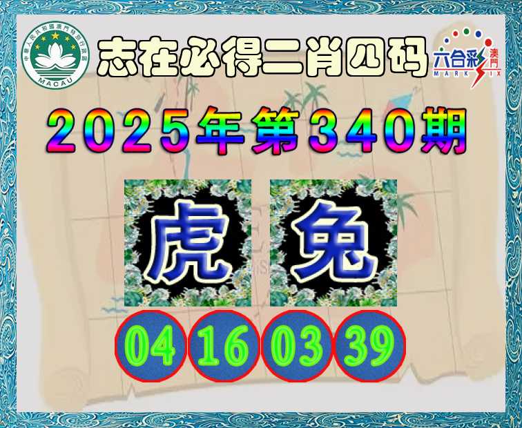 340期:《志在必得》 🍃二肖四码🍃【兔】【04.16.03.39】开:虎16