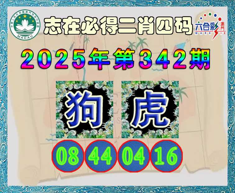 342期:《志在必得》 🍃二肖四码🍃【狗】【08.44.04.16】开:虎04
