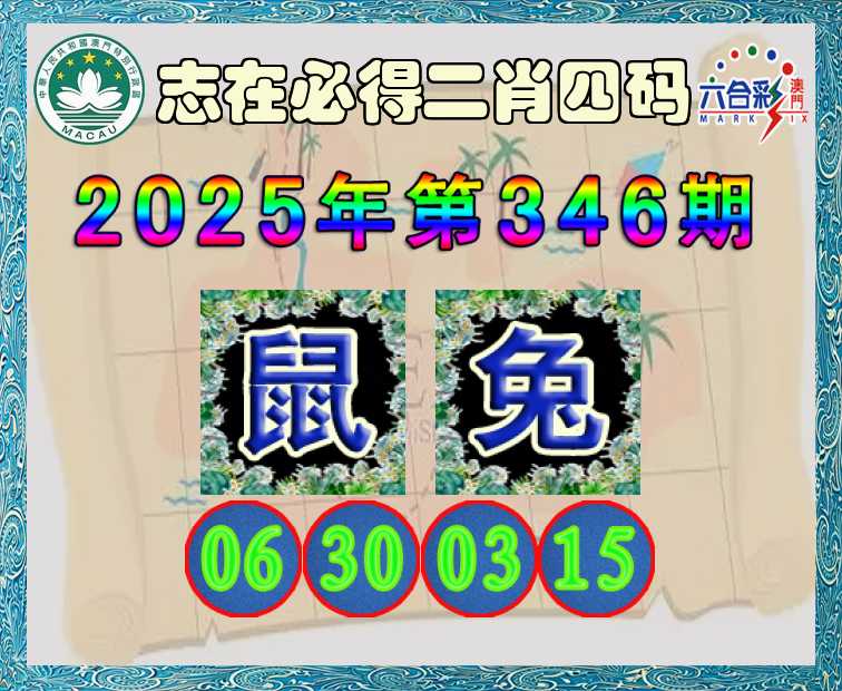 346期:《志在必得》 🍃二肖四码🍃【鼠】【06.30.03.15】开:兔03