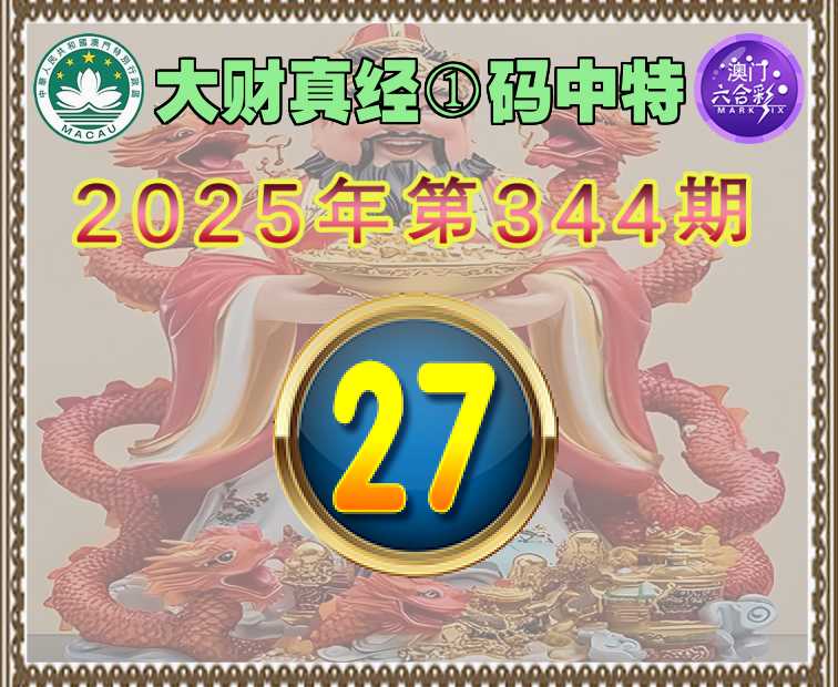 344期:【大财真经】 🍔①码中特🍔【27】开:27