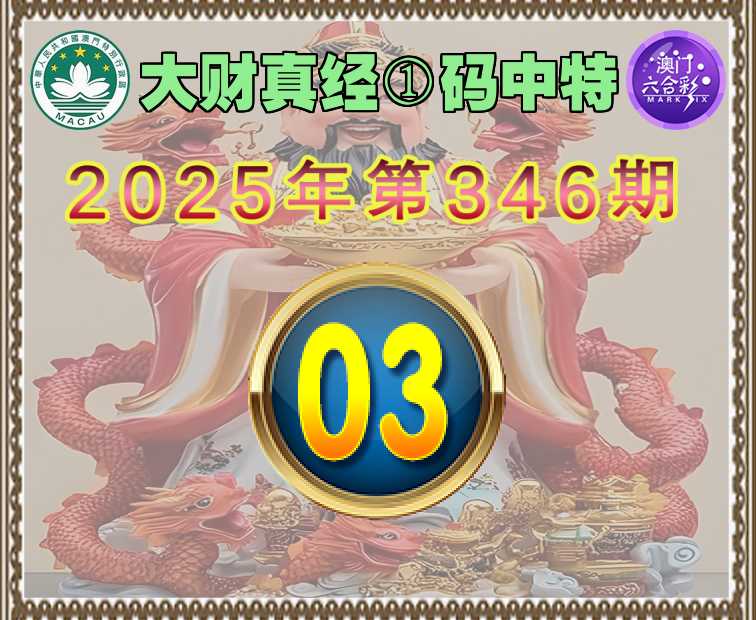 346期:【大财真经】 🍔①码中特🍔【03】开:03