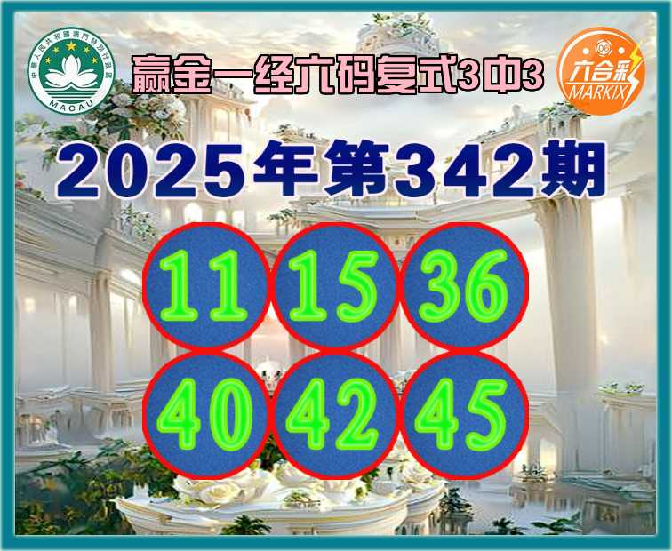 342期: 🥬『赢金一经』 🥬六码复式3中3🥬