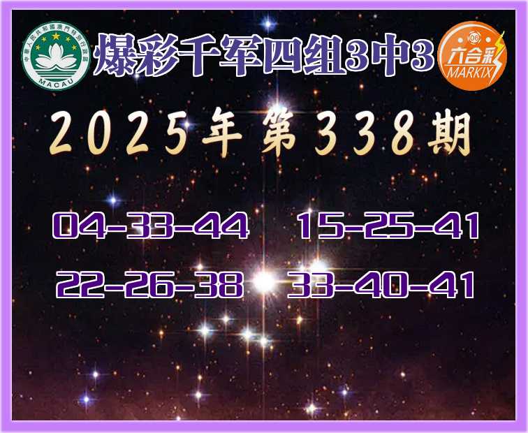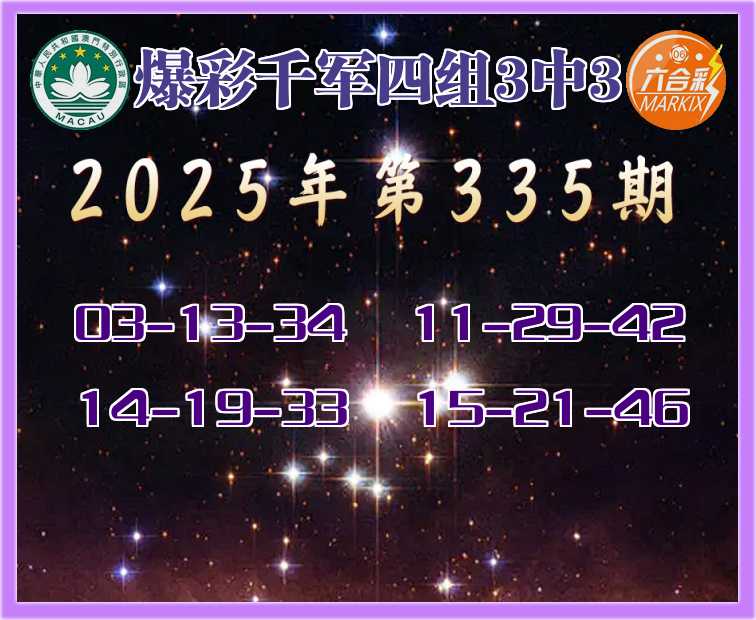 335期:《爆彩千军》 🍖四组3中3🍖