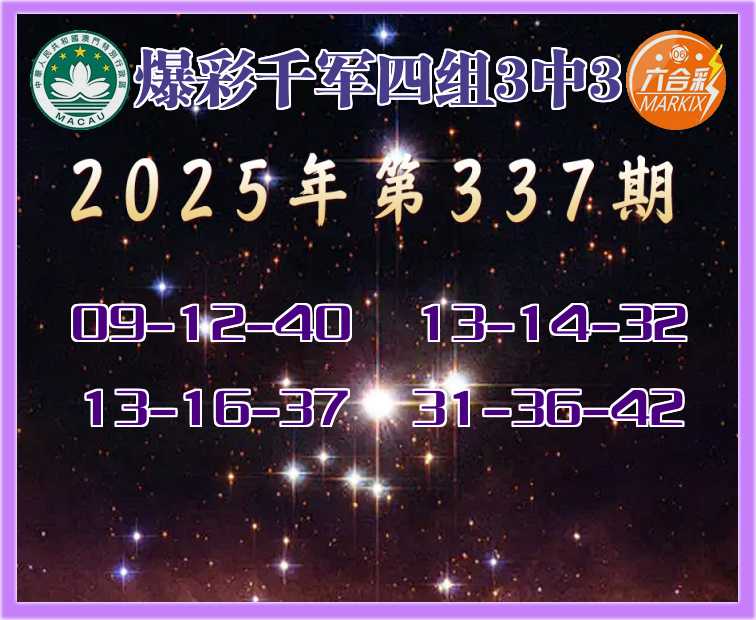 337期:《爆彩千军》 🍖四组3中3🍖