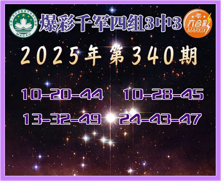 340期:《爆彩千军》 🍖四组3中3🍖