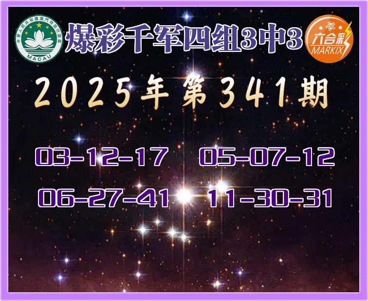 341期:《爆彩千军》 🍖四组3中3🍖