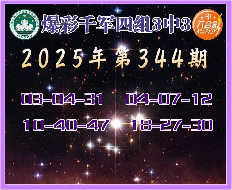 344期:《爆彩千军》 🍖四组3中3🍖