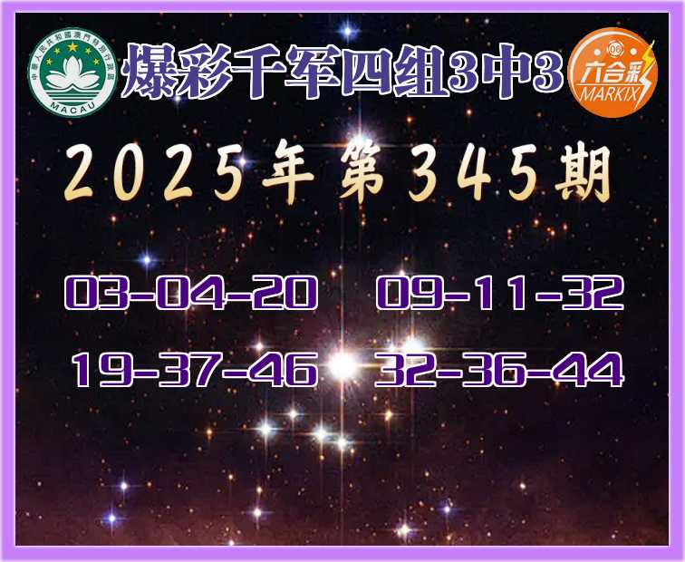 345期:《爆彩千军》 🍖四组3中3🍖