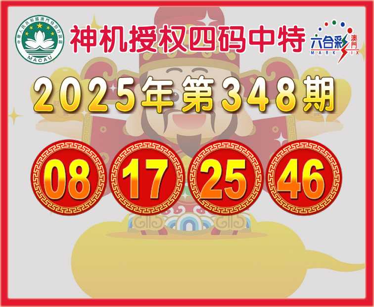 348期:〖神机授权〗 ⛩️四码中特⛩️【08.17.25.46】开:00准