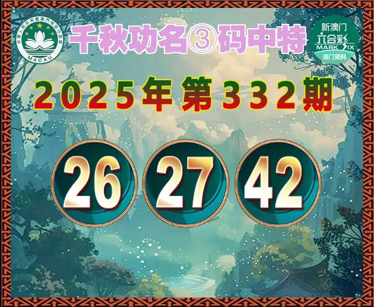 332期: ♦️『千秋功名』 ♦️③码中特♦️【26.27.42】开:26