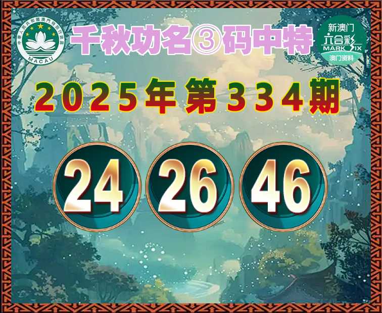 334期: ♦️『千秋功名』 ♦️③码中特♦️【24.26.46】开:46