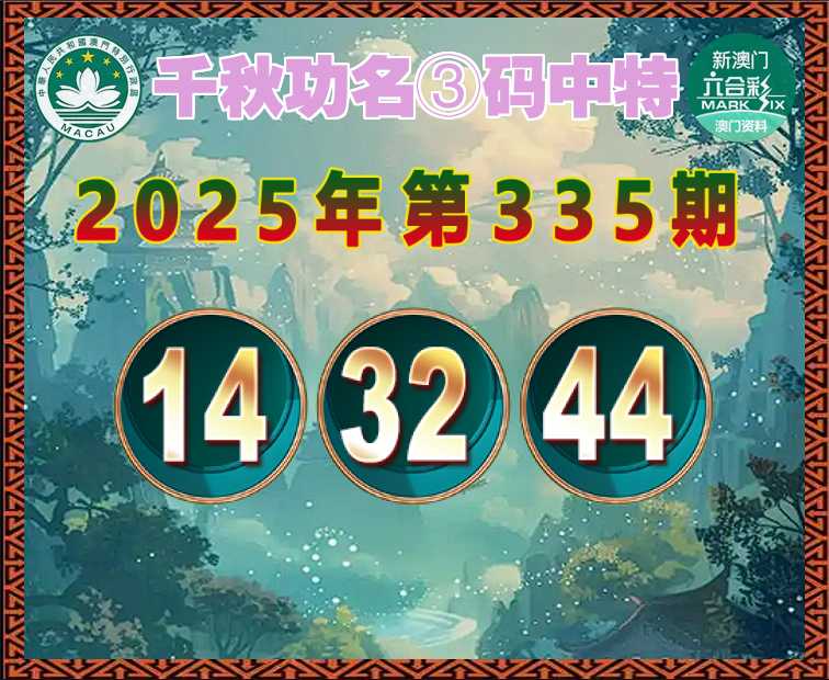 335期: ♦️『千秋功名』 ♦️③码中特♦️【14.32.44】开:44