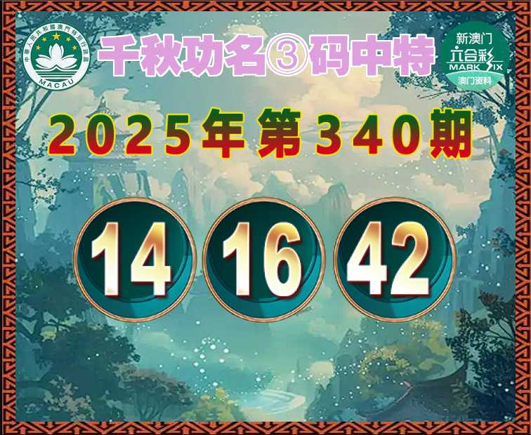 340期: ♦️『千秋功名』 ♦️③码中特♦️【14.16.42】开:16