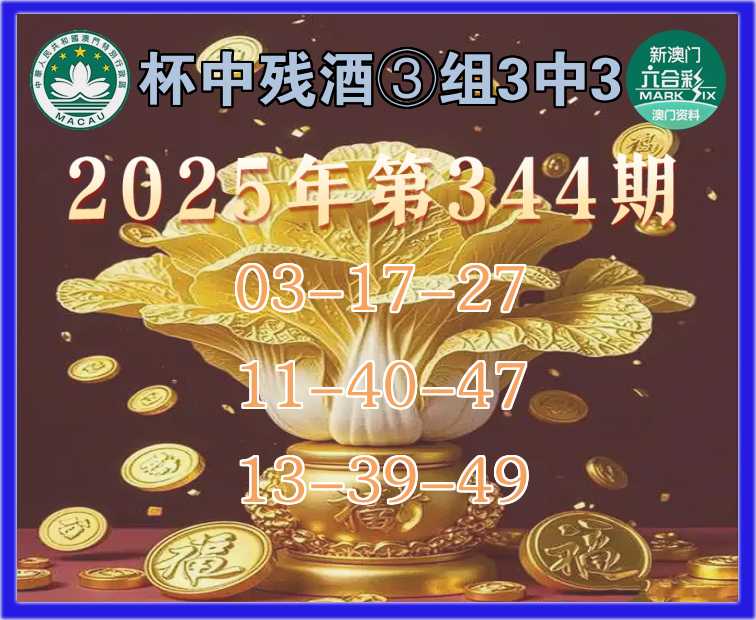 344期: 👚《杯中残酒》 👚③组3中3👚