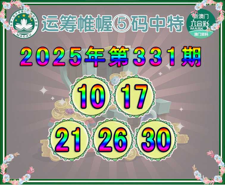 331期: 🎆『运筹帷幄』 🎆⑤码中特🎆【10.17.21.26.30】开:26