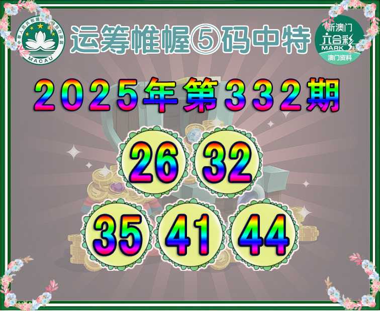 332期: 🎆『运筹帷幄』 🎆⑤码中特🎆【26.32.35.41.44】开:26
