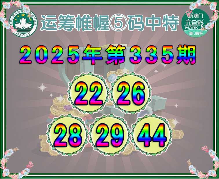 335期: 🎆『运筹帷幄』 🎆⑤码中特🎆【22.26.28.29.44】开:44
