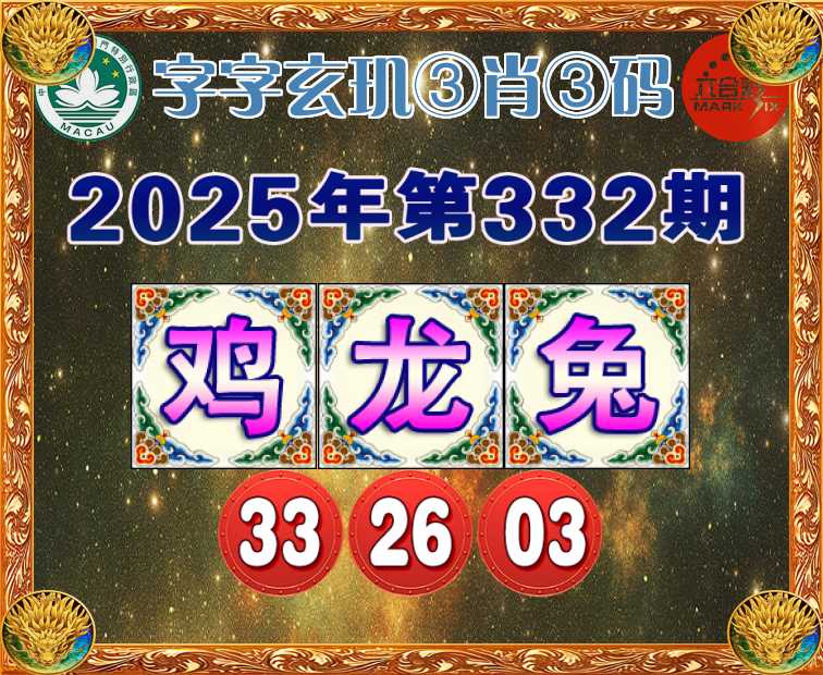 332期:『字字玄玑』 🧧③肖③码🧧【鸡兔】【33.26.03】开:龙26