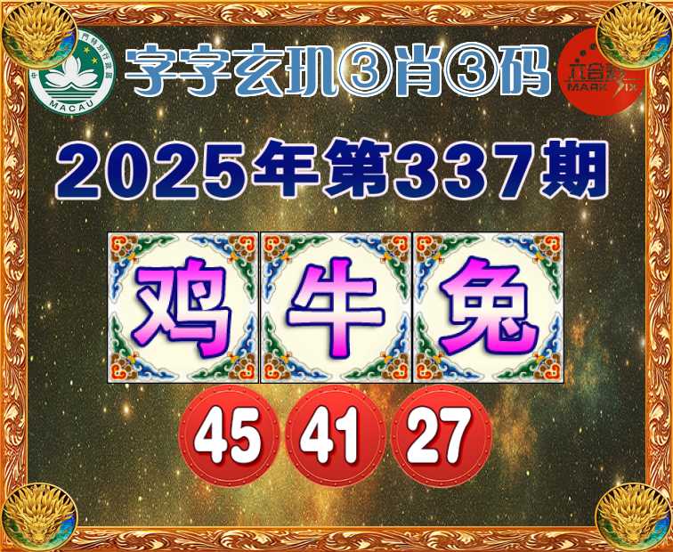 337期:『字字玄玑』 🧧③肖③码🧧【牛兔】【45.41.27】开:鸡09