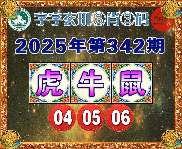 342期:『字字玄玑』 🧧③肖③码🧧【牛鼠】【04.05.06】开:虎04