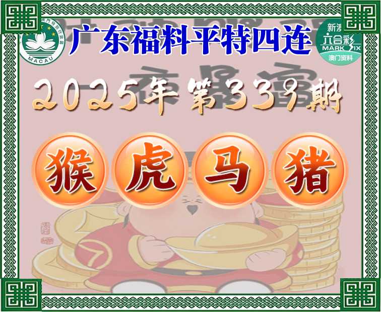 339期:『广东福料』 📙平特四连📙【猴虎马猪】开:猴22,虎40,马48,猪31