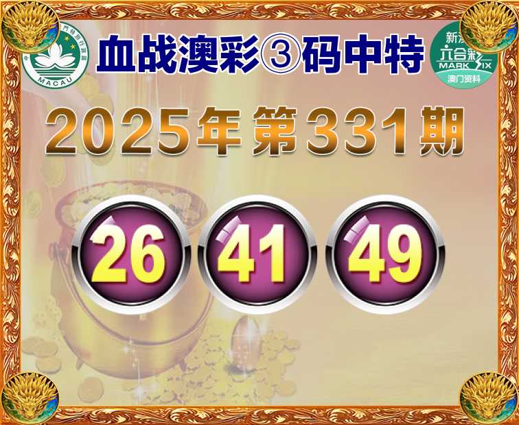 331期:【血战澳彩】 ☝️③码中特☝️【26.41.49】开:26