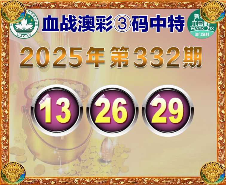332期:【血战澳彩】 ☝️③码中特☝️【13.26.29】开:26