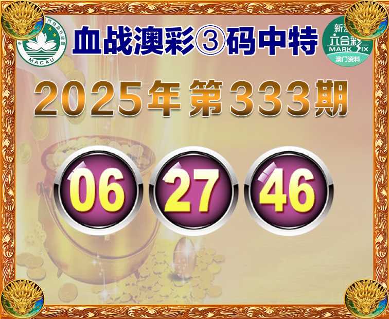 333期:【血战澳彩】 ☝️③码中特☝️【06.27.46】开:06