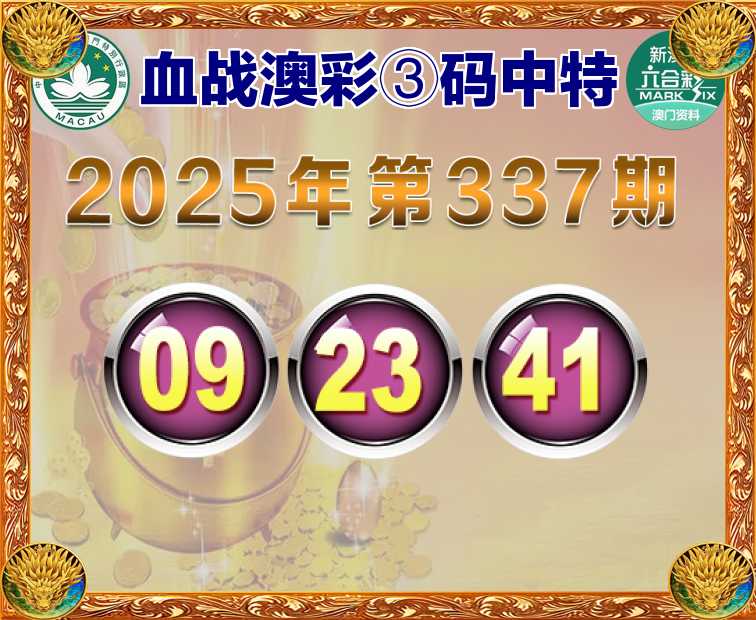 337期:【血战澳彩】 ☝️③码中特☝️【09.23.41】开:09
