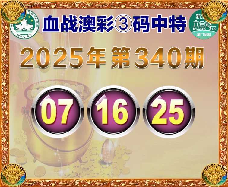 340期:【血战澳彩】 ☝️③码中特☝️【07.16.25】开:16