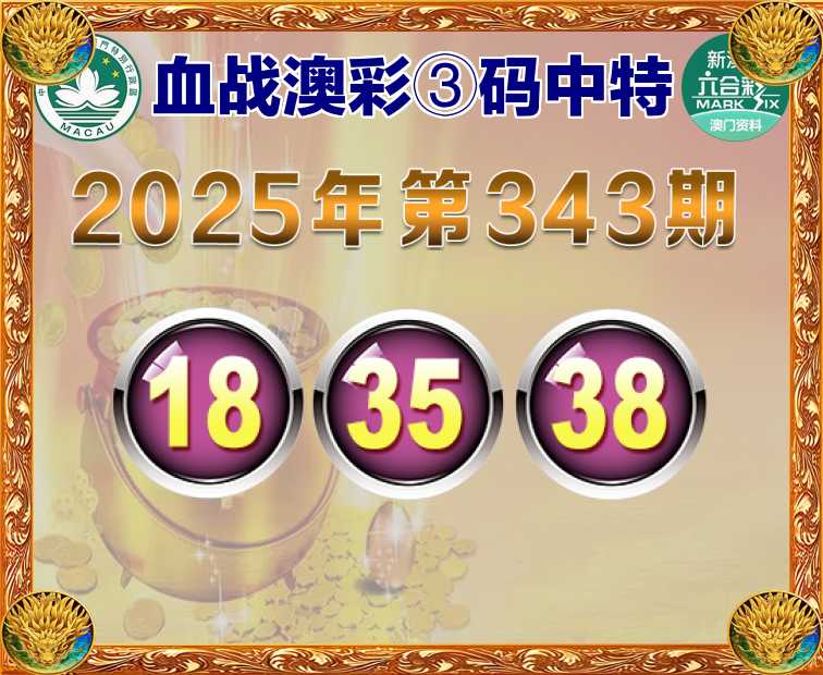 343期:【血战澳彩】 ☝️③码中特☝️【18.35.38】开:38