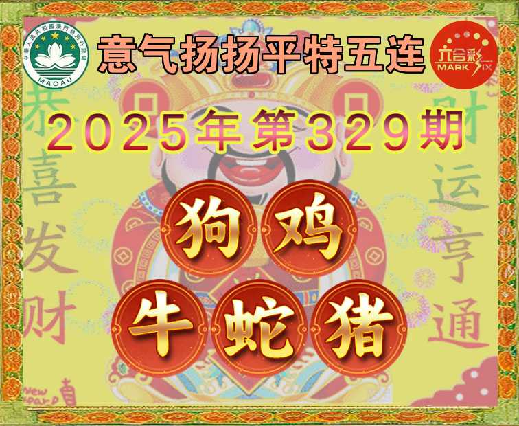 329期: 意气扬扬 🥽平特五连🥽【狗鸡牛蛇猪】开:狗44,鸡45,牛17,蛇13,猪19