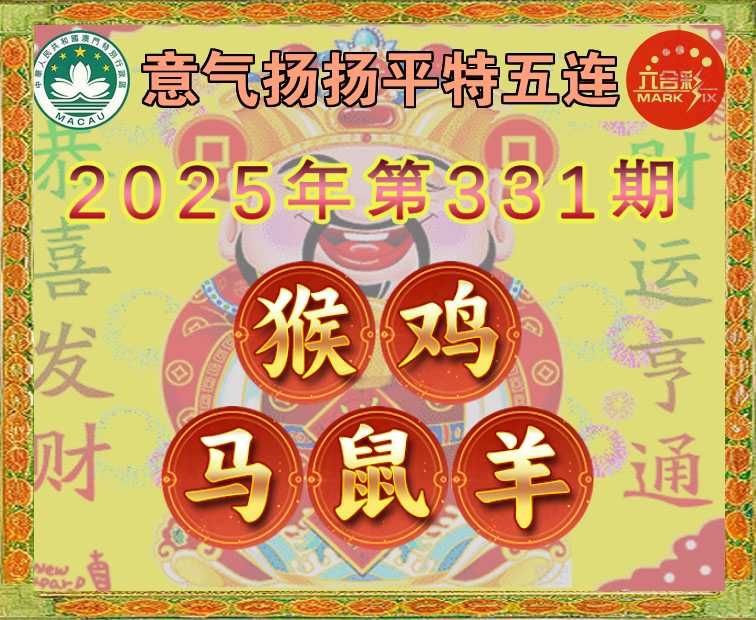 331期: 意气扬扬 🥽平特五连🥽【猴鸡马鼠羊】开:猴22,鸡21,马24,鼠42,羊47