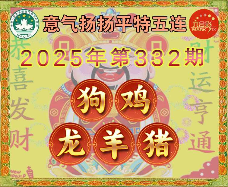 332期: 意气扬扬 🥽平特五连🥽【狗鸡龙羊猪】开:狗44,鸡45,龙26,羊23,猪19