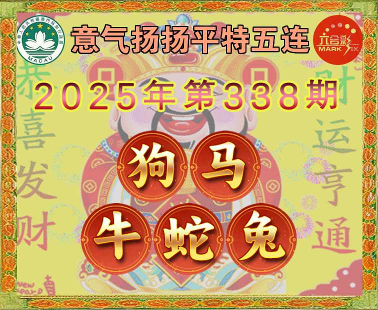 338期: 意气扬扬 🥽平特五连🥽【狗马牛蛇兔】开:狗08,马48,牛41,蛇25,兔15
